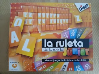 Juego de mesa La Ruleta de la Suerte Junior, basado en el popular programa de televisión. - Incluye tablero, ruleta y fichas. - Diseñado para niños y familias. - Producto de Antena 3.