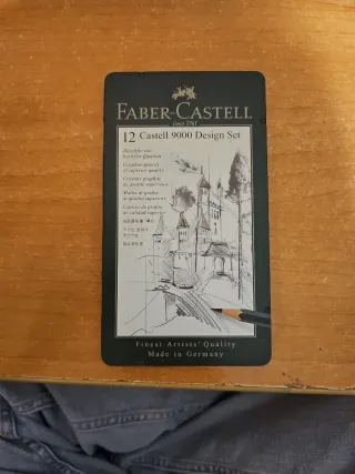 Estuche metálico con 12 lápices de grafito de la marca Faber-Castell. - Modelo Castell 9000 Design Set. - Lápices de grafito de calidad superior. - Fabricado en Alemania. NUNCA FUE USADO