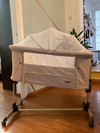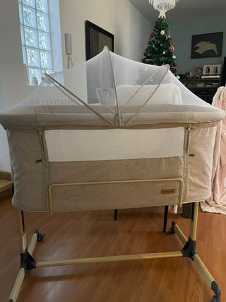 Cuna colecho para bebés de 0 a 12 meses, con función anti reflujo. Ha tenido 3 meses de uso. - Incluye mosquitera. - Estructura con ruedas para facilitar el movimiento - cinturones de seguridad para sujetar con la cama si realiza colecho - Diseño moderno y funcional. -7 niveles de altura lo que hace fácil adaptar a la altura de cualquier tipo de cama - incluye dos sets de sábanas cada una con su funda de almohada sábana y funda de colchón -incluye funda de colchón anti derrames