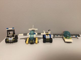 Son 2 helicopteros, tres coches y un camión policia. También incluye 6 policias y 3 ladrones.