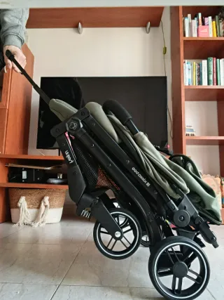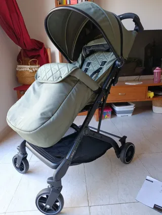 Silla de paseo Kikkaboo Miley en color verde militar. Es ligera y fácil de plegar. - Capota extensible. - Reposapiés ajustable. - Cesta de almacenamiento inferior. - Ruedas delanteras giratorias. - Con manilla para transportar tipo maleta.