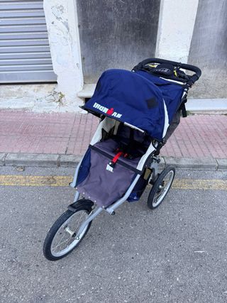 Vendo carrito deportivo IRONMAN de tres ruedas, ideal para paseos, running ligero y caminos de tierra. El carrito está usado pero en muy buen estado general. 🔧 A tener en cuenta: • Es necesario cambiar las cámaras de aire • Los neumáticos están en buen estado ✔ Estructura fuerte y estable ✔ Ruedas grandes, aptas para terrenos irregulares ✔ Capota parasol ✔ Arnés de seguridad ✔ Espacio portaobjetos