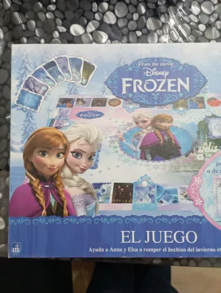 Juego de mesa El Juego de Frozen, basado en la película de Disney. Ayuda a Anna y Elsa a romper el hechizo del invierno. - Ilustraciones inspiradas en la película. - Incluye cartas y tablero. La forma interactiva no se puede usar porque la aplicación no está activa Se puede jugar de la forma tradicional, es muy entretenido