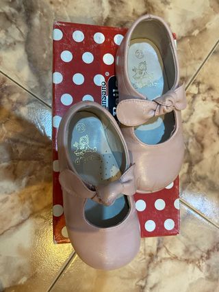 Se venden zapatos de vestir de niña, color rosa, talla 23. Están en muy buen estado ya que tienen poco uso. Son bonitos y de calidad. La marca es d'bebe e incluyen la caja original.