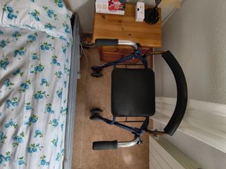 Andador en buen estado, ideal para facilitar la movilidad. - Asiento incorporado. - Cesta extraíble para llevar objetos.