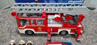 Camión de bomberos Playmobil City Action, modelo 9463. Incluye figuras y accesorios. - Camión con luces y sonido. - Escalera extensible. - Dos figuras de bomberos. - Accesorios como hachas y conos. SOLO LE FALTA UN RETROVISOR, a cambio regalo otro 🚒bombero