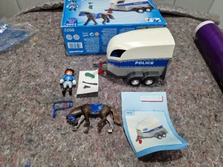 Set de Playmobil 6922 de la policía con un remolque para caballos. - Incluye figura de policía. - Incluye caballo con silla de montar. - Incluye remolque de policía. - Incluye accesorios. Todo completo. No falta nada