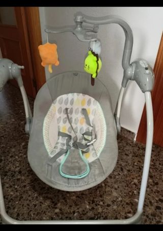 Hamaca Jane Baluu en color verde menta con estampado floral. Tiene 3 meses de uso, se compró este mismo verano. - 3 posiciones de reclinado. - Diseño ergonómico. - Barra de juegos con cuentas de madera. - Tejido suave y confortable. - Base estable. - Dispone de su caja original
