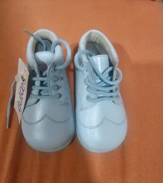 Preciosas zapatillas para bebé, talla 18. Ideales para los primeros pasos,nuevos sin estrenar - Color azul claro. - Cierre de cordones. - Detalle de picado en la puntera.