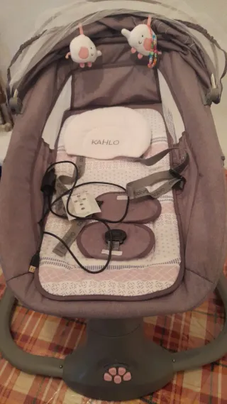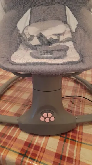 Hamaca y cuna para bebé en excelente estado, casi sin uso. - Color gris y rosa. - Incluye mosquitera. - Múltiples botones de control.