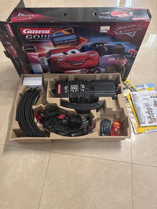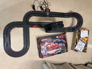 Circuito de carreras Scalextric de Cars. - Incluye coches y pistas. - Instrucciones de montaje - Caja original.