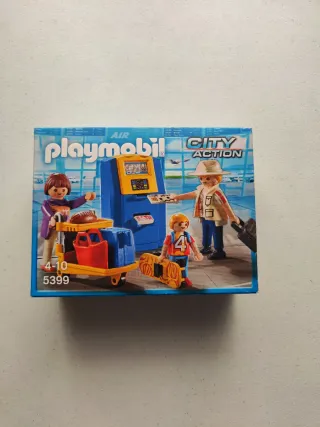 Set de Playmobil City Action, modelo 5399, ambientado en un aeropuerto. Incluye figuras y accesorios para recrear escenas de viaje. - Figuras de adultos y niños. - Carrito de equipaje. - Mostrador de facturación. - Accesorios de viaje. Hago lotes para hacerte ahorrar en los gastos de envío. Puede elegir lo que gusta y enviaré en un paquete.