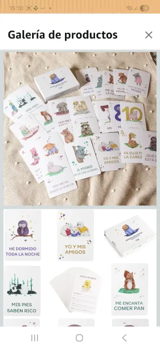 Conjunto de tarjetas para registrar los hitos del crecimiento de tu bebé. - Incluye tarjetas de semanas, meses, estaciones, Navidad, Papá y Mamá. - Diseños con animales y motivos infantiles. - Tarjetas para Ya doy palmitas, Mis primeros dientes, Ya gateo, Mis primeros pasos, Me encanta jugar, Mi primer baño y ¡Feliz cumple!. - Incluye una tarjeta ¡Hola Mundo! y 87 motivos en 40 tarjetas sobre.