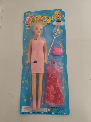 Set de muñeca tipo Barbie con un vestido rosa y accesorios. -Incluye una varita mágica. - Viene con un bolso rosa. - Trae un vestido adicional rojo con estampado floral.