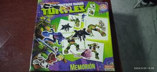- Ideal para niños a partir de 4 años. - Juego de memoria de las Tortugas Ninja. - Incluye tarjetas con personajes. - Ideal para jugar en familia. -El típico juego de encontrar la pareja ,MEMORION,juego que usa y mejora la memoria al instante ,algo más moderno con imágenes de las tortugas ninjas,están todas las tabletas con sus dibujos a color y en su caja original ,más artículos interesantes en mi perfil.