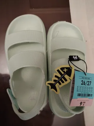 Chanclas de playa en color verde menta, talla 26/27. - Diseño cómodo y práctico. - Tiras ajustables en el talón con velcro - Suela antideslizante.