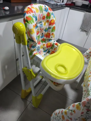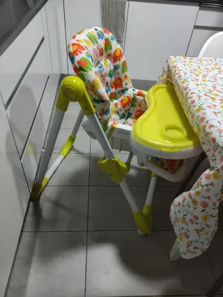Trona para bebé con un divertido diseño de elefantes en la funda. - Funda acolchada con estampado. - Bandeja extraíble. - Estructura resistente.