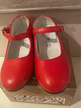 Zapatos de flamenco para niña en color rojo, talla 27. Cuentan con una tira y hebilla para un ajuste seguro. - Color: Rojo - Talla: 27 - Cierre: Tira con hebilla