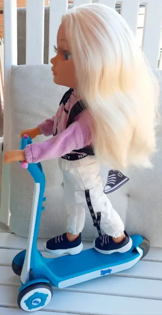 Patinete de la muñeca Nancy con su mochila a juego. - Diseño en color azul y blanco. - Incluye mochila. - Ideal para jugar.
