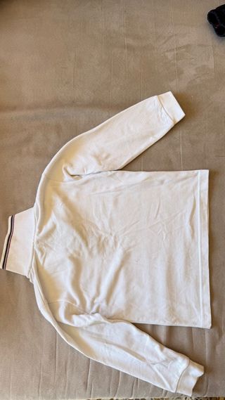 Camiseta de manga larga deportiva de Samaniego. Talla 6. En buen estado, pero con dos pequeñas manchas en ambos puños (en la parte de atrás) como se puede aprecias en las fotos.