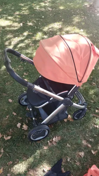 Cochecito de bebé Oyster en color coral. - Capota extensible. - Manillar ajustable. - Cesta de almacenamiento inferior. Todos l'ós complementos: mosquitera, mantas, plástico lluvia....