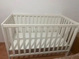 Cuna de madera en color blanco, ideal para el descanso del bebé. - Estructura de madera. - Diseño de barrotes.