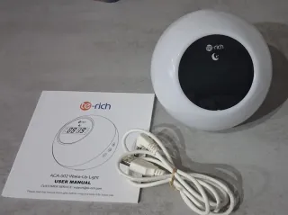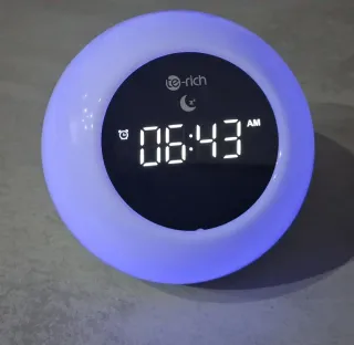 Despertador digital Te-rich con función de ayuda al sueño. Ideal para niños, con 9 patrones de luz disponibles y 6 melodías relajantes. - Con blueetoth para conectar otras músicas - Incluye manual de usuario. - Cable de carga USB.