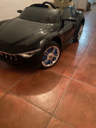 Coche eléctrico infantil con diseño deportivo inspirado en Maserati. - Color negro brillante. Pintado a pistola como los de verdad. - Ruedas con detalles en led en azul. - Asiento cómodo. Hasta 6-7 años según esratura. Dos motores eléctricos . Mando a diatancia. Conservo caja original y todo en buen estado. Me costó 550€ Usado 6 u 8 veces.