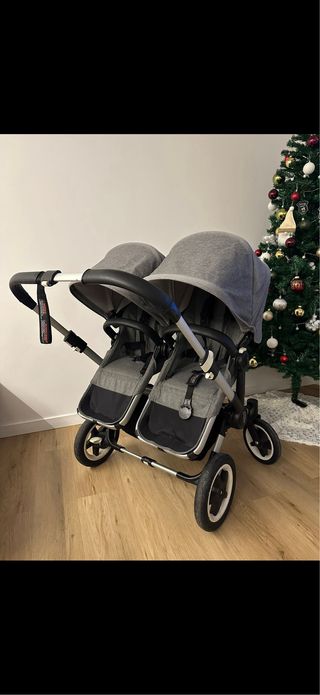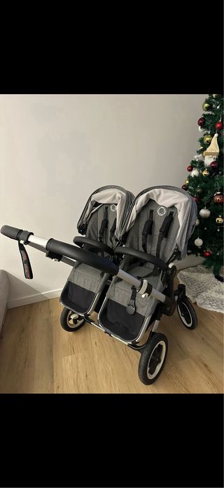 Carro gemelar Bugaboo en color gris. Dos capazos Dos sillas Y con la opción de añadir dos grupo 0 con adaptador Capotas extensibles