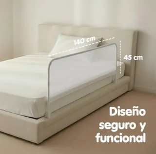 Barrera de seguridad para cama, ideal para evitar caídas. - Medidas: 140 cm de largo x 45 cm de alto. - Diseño seguro y funcional. - Material de malla blanca.