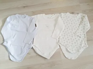 Bodys manga larga sin manchas. Tallas 68cm y 74cm 2€ la unidad.