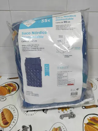 Saco nórdico desmontable para cama de 90 cm. Incluye relleno nórdico, funda nórdica, sábana bajera ajustable y funda de almohada. Cierre con cremallera. - Relleno nórdico: 90 x 170 cm - Funda nórdica: 95 x 175 cm - Sábana bajera ajustable: 90 x 190 cm - Funda de almohada: 45 x 115 cm - Composición exterior: 100% algodón - Relleno: 100% poliéster