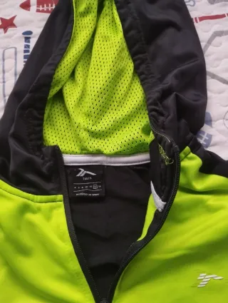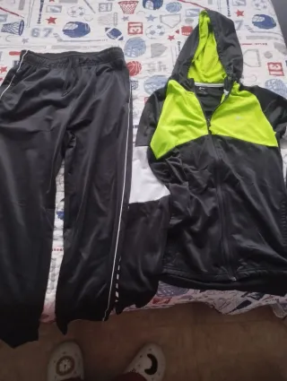 Conjunto de chándal y pantalón. - Chándal talla 14. - Pantalón talla 16. - Diseño deportivo en negro y verde lima.