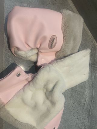 Manoplas de polipiel en color rosa para carrito de bebé de la marca Mayoral. Cuentan con un suave forro interior de pelo sintético y un detalle de la marca en relieve. - Color: Rosa - Material exterior: Polipiel - Forro interior: Pelo sintético - Marca: Mayoral