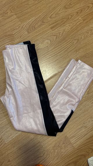 Leggings de Zara con un acabado brillante y detalles laterales. - Diseño con franja lateral. - Tejido con brillo. Color rosa , negro y gris