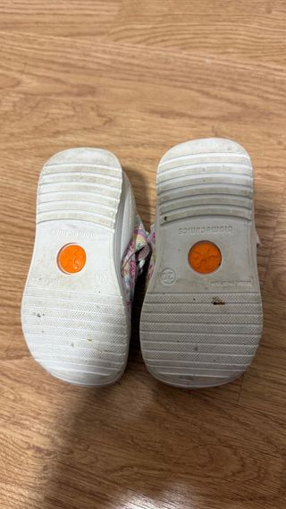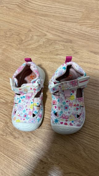 Zapatillas infantiles Biomecanics con un alegre estampado floral. - Talla 20. - Cierre de velcro. - Diseño abierto tipo sandalia.