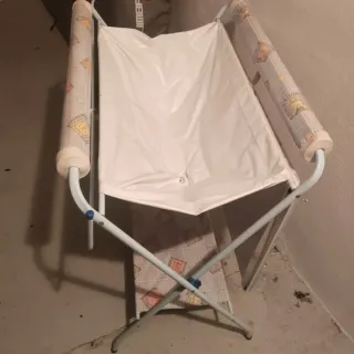 Cuna de viaje plegable con cambiador - Estructura de metal. - Tejido resistente en color gris y azul. - Asa de transporte.
