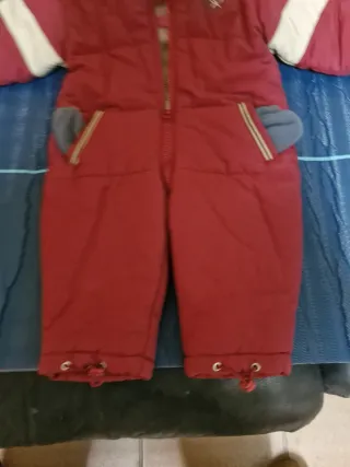 Traje de nieve para bebé de 18 meses. - Color rojo y beige. - Cierre de cremallera frontal. - Bolsillos laterales.