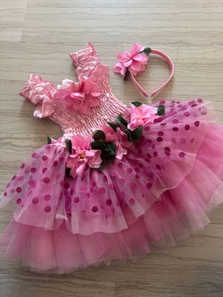 Precioso disfraz de hada para niñas de 3 a 4 años. - Diseño en color rosa. - Adornado con flores y detalles de tul. - Incluye diadema a juego.