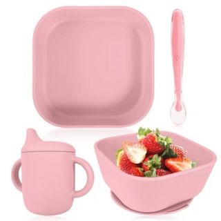 Lote de varios sets de alimentación de silicona para bebé. Cada set incluye 4 diferentes piezas para facilitar la hora de comer. - Material: Silicona. BPA Free - Diseño: Vajilla para bebé. - Colores: Azul y Rosa Azul ; 30 sets Rosa; 27 sets