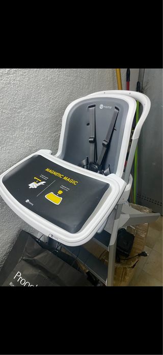 Trona de la marca 4moms con sistema Magnetic Magic. - Bandeja con superficie magnética. - Arnés de seguridad. - Diseño moderno y funcional.