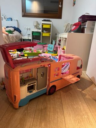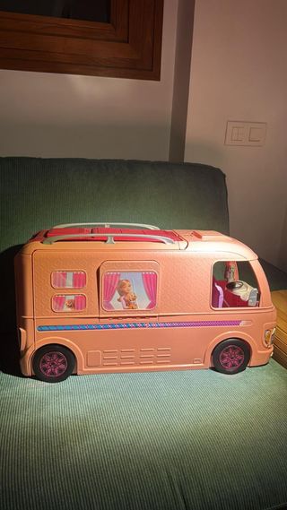 Autobús de juguete LOL. - Color rosa. - Diseño de autobús. - Ventanas con cortinas. - Ruedas decoradas. - Con jugetes dentro