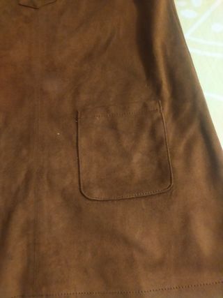 Vestido de ante para niña. - Talla 5 años. - Color marrón. - Cierre de cordones en la parte delantera. - Dos bolsillos en la parte delantera.