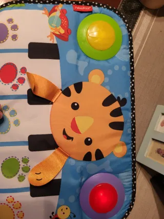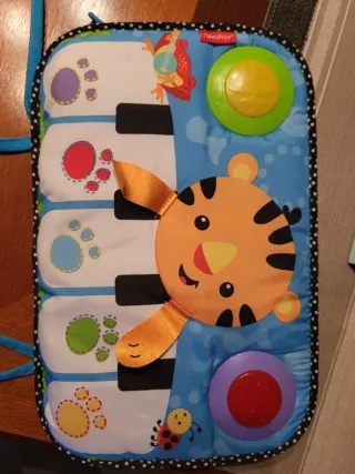 Alfombra de piano interactiva para bebés de Fisher-Price. - Diseñada para que los bebés jueguen con los pies. - Incluye animales de granja y notas musicales. - Colores vibrantes y atractivos. - Ideal para cuna o suelo. - Muy cuidado, limpio y listo para usar. - Incluye pilas nuevas puestas ya.
