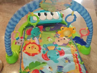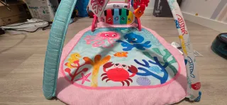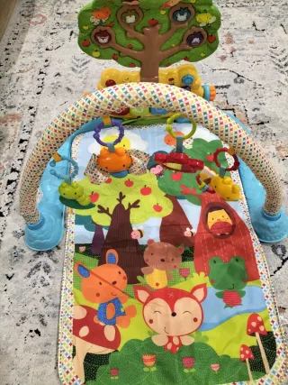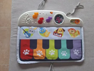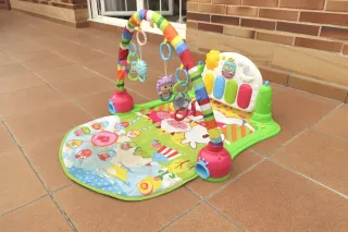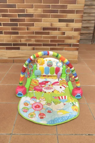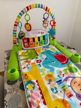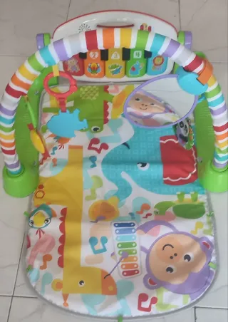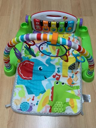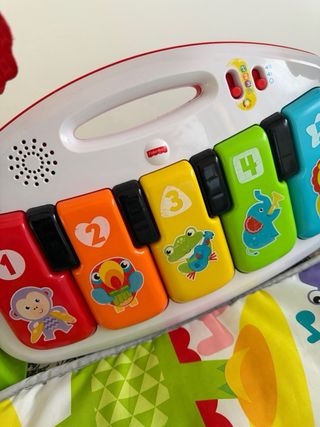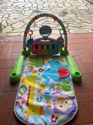 Gimnasio de actividades Fisher-Price con piano interactivo. - Piano con teclas de colores y figuras. - Arco con juguetes colgantes. - Alfombra de juego con diseños infantiles. - Con algunos rayones del uso pero funciona perfectamente