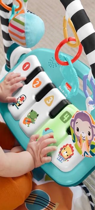 Alfombra de piano interactiva para bebés de Fisher Price. - Diseñada para estimular el juego y la música. - Incluye diferentes animales y notas musicales. - Colores vibrantes y materiales suaves.