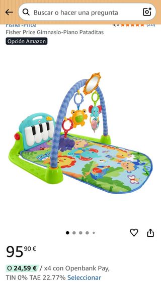 Gimnasio para bebés Fisher-Price Prácticamente nuevo, usado 2 meses ( muy bien cuidado ) Es colorido y entretenido. Tiene muy poco uso, comprado nuevo por Amazon - Alfombra acolchada con diseños de animales. - Arco con juguetes colgantes. - Piano musical con luces Idioma: Castellano LO VENDO SIN PILAS NO BAJO EL PRECIO VENDO MÁS COSAS DE BEBÉ