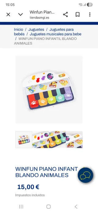 Alfombra musical interactiva para niños. - Incluye diferentes sonidos y ritmos. - Fomenta el juego y el aprendizaje. - Apta para mayores de 3 años.