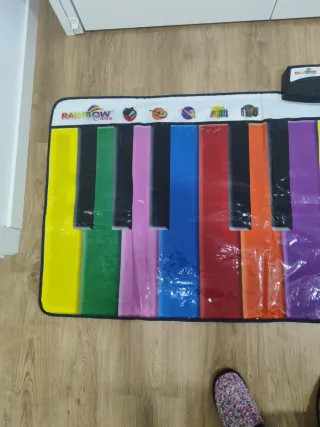 Piano de suelo para niños, en buen estado. Es colorido y divertido. - Alfombra musical con 14teclas blancas y 10 negras - Incluye unidad de control con sonidos. - Perfecto para que los más pequeños aprendan música.