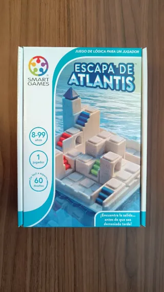Juego de lógica Smart Games, Escapa de Atlantis. - Diseñado para un jugador. - Edad recomendada: 8-99 años. - Incluye 60 desafíos de fácil a experto.